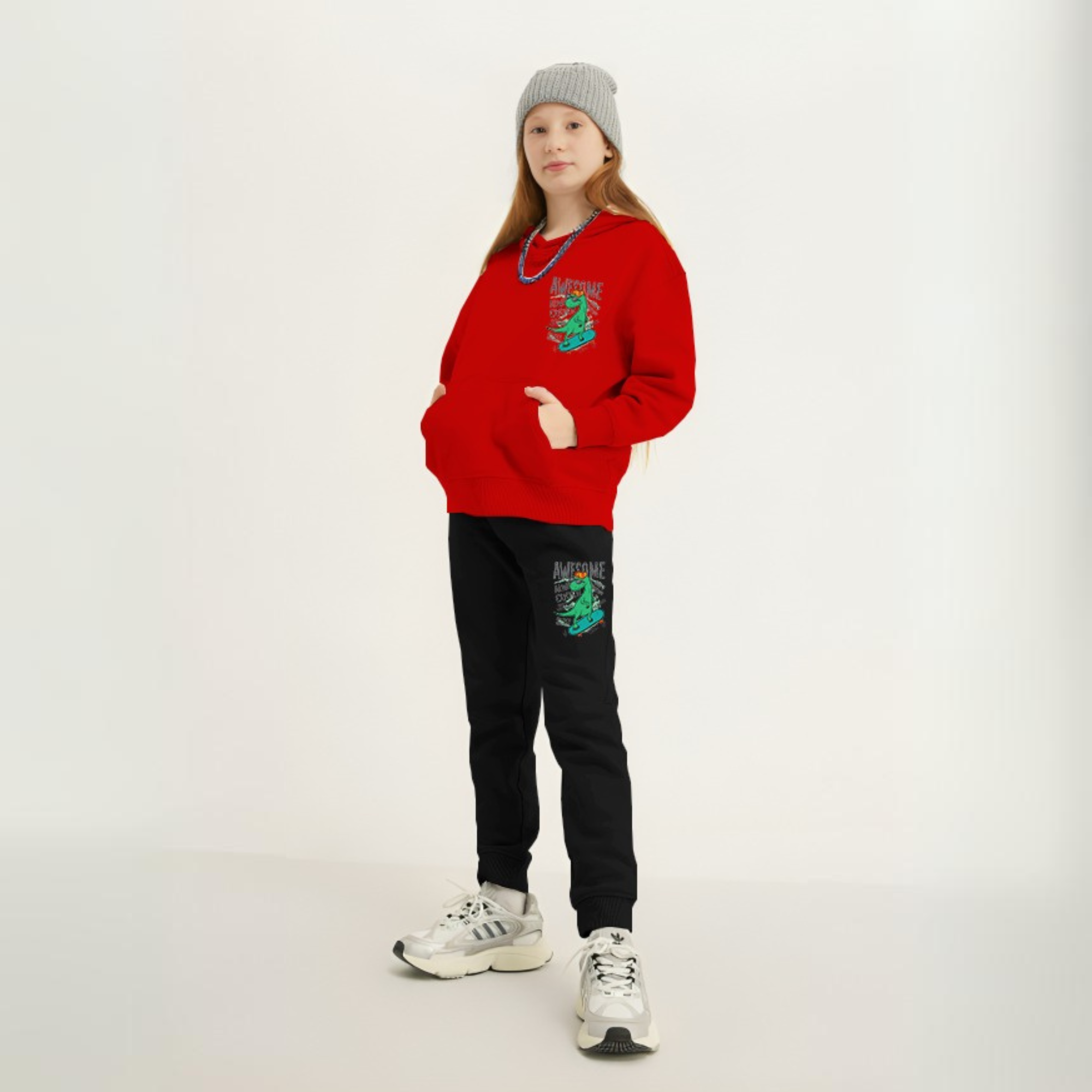 Awesome Dino Printed Kids Hoodie Set