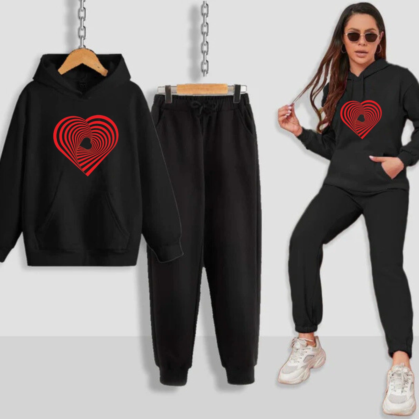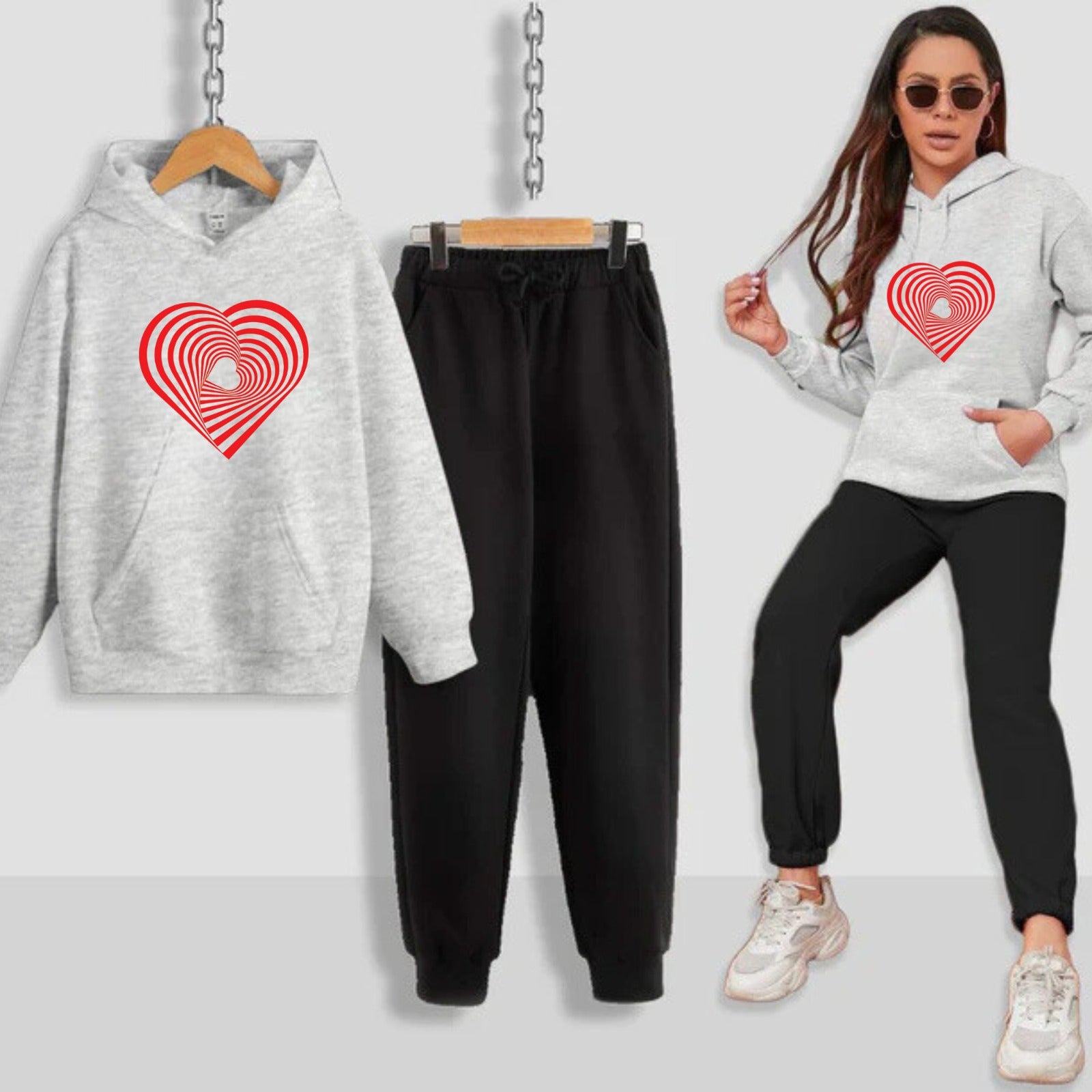 Geometrical Heart Printed Women Hoodie Set Pair of Hoodie & Trouser Fabric: Soft High-Quality Fleece Full Sleeve...