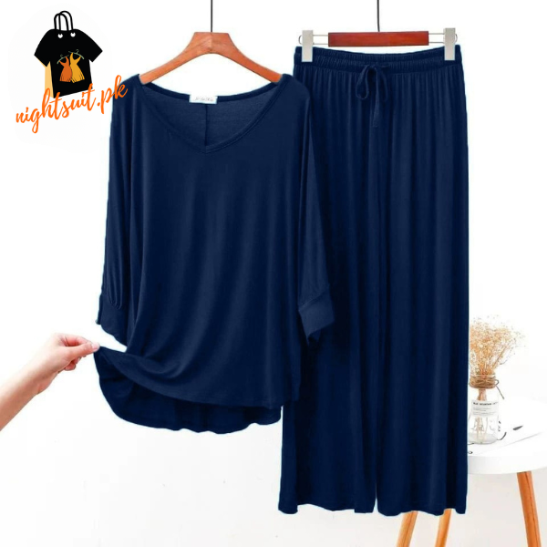 Blue V-Neck Women Night Suit PJ Set  Night Suits for Women very attractive and trendy design Blended Cotton...