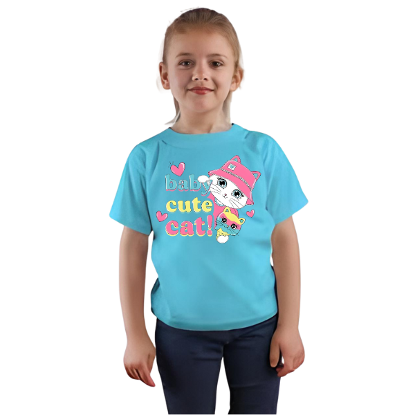Baby Cat Printed T Shirt For Kids Fabric: Soft High-Quality Cotton Jersey Half Sleeve T-Shirt Round Neck...