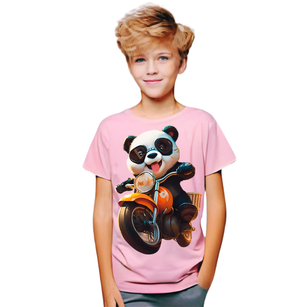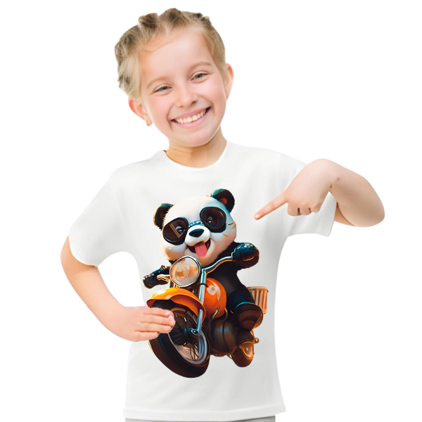 Panda Ride on Bike T Shirt For Kids