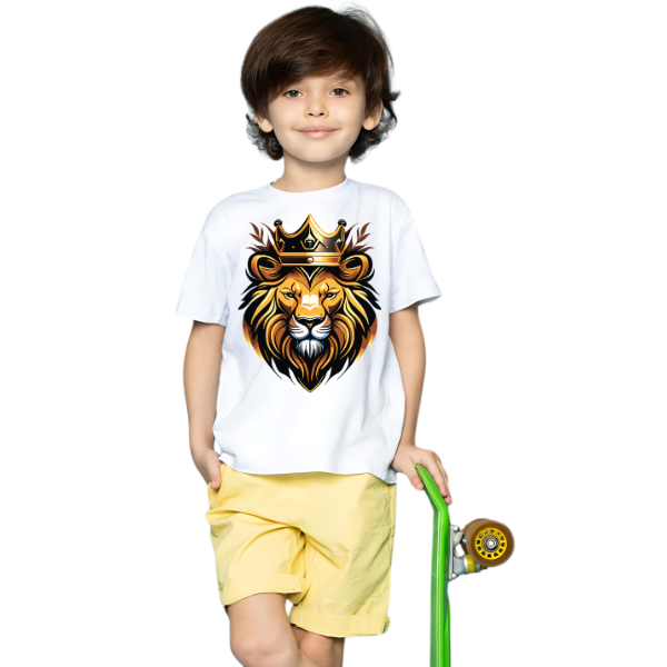 GOLDEN LION SHIRT FOR KIDS Fabric: High-Quality Cotton Jersey Half Sleeve T-Shirt Round Neck High Quality DTF...