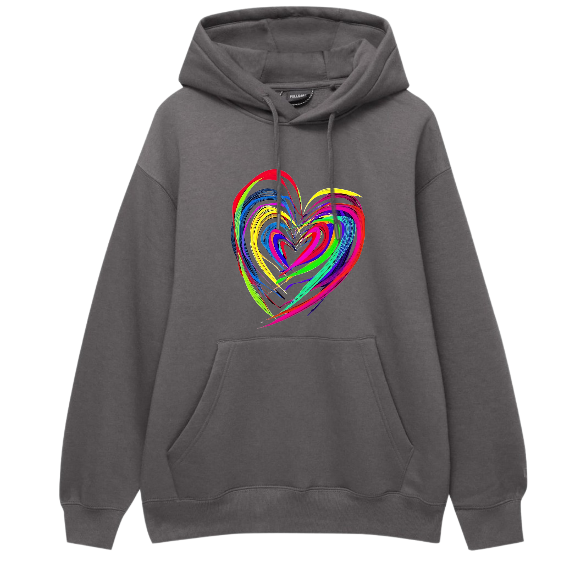 This Neon Heart Printed Hoodie is a must-have for any fashion-forward woman. Stand out from the crowd with the vibrant neon heart design. Perfect for adding a pop of color and fun to any outfit, this hoodie is sure to make a statement. Stay warm and stylish with this unique and eye-catching piece.