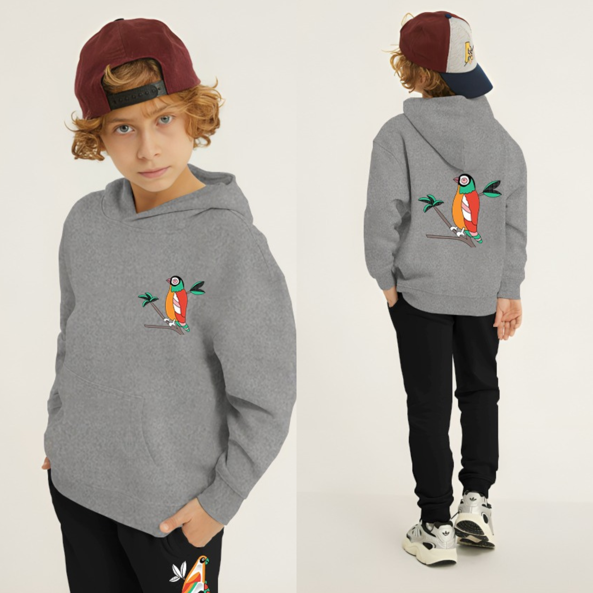 Parrot Printed Kids Hoodie Set