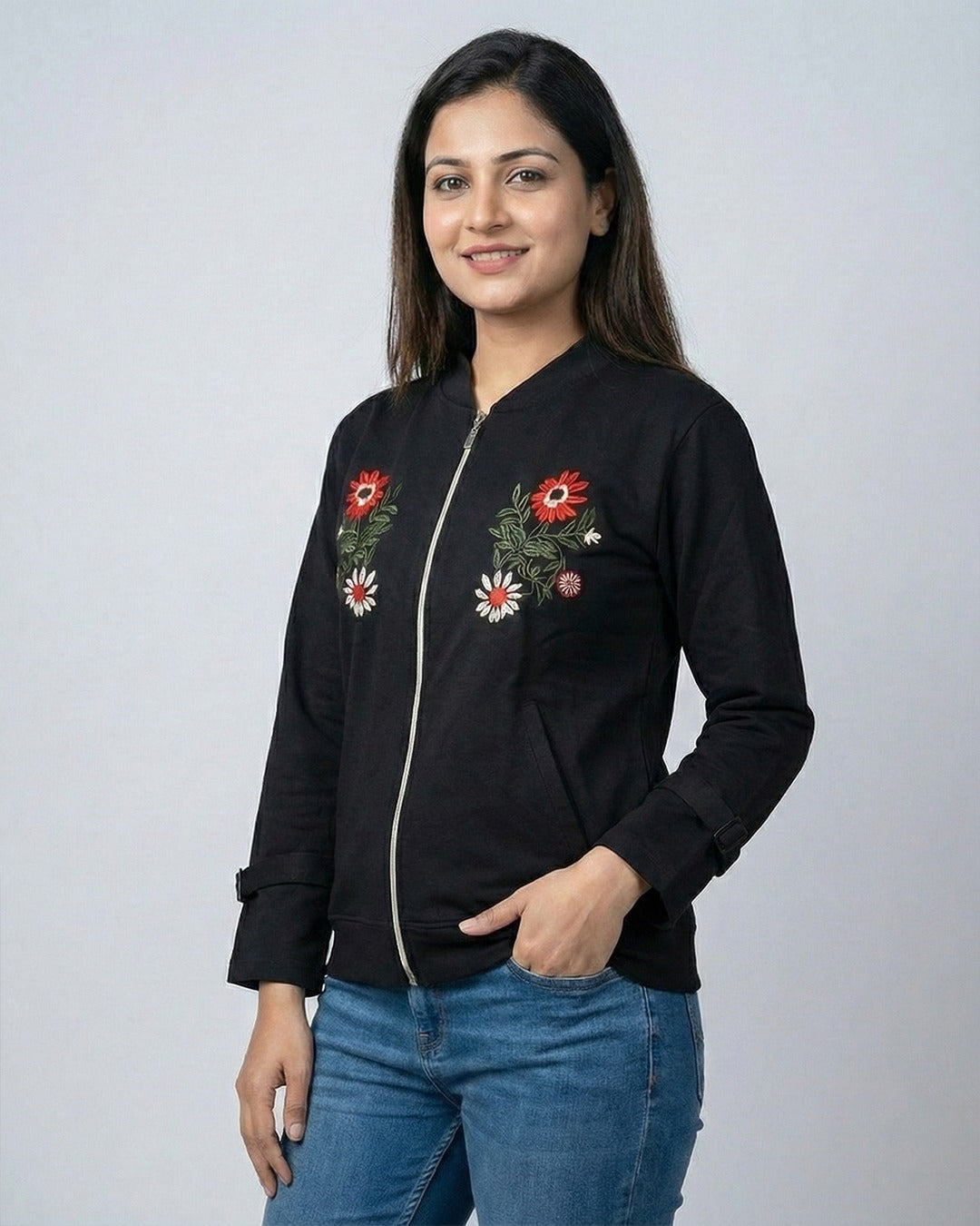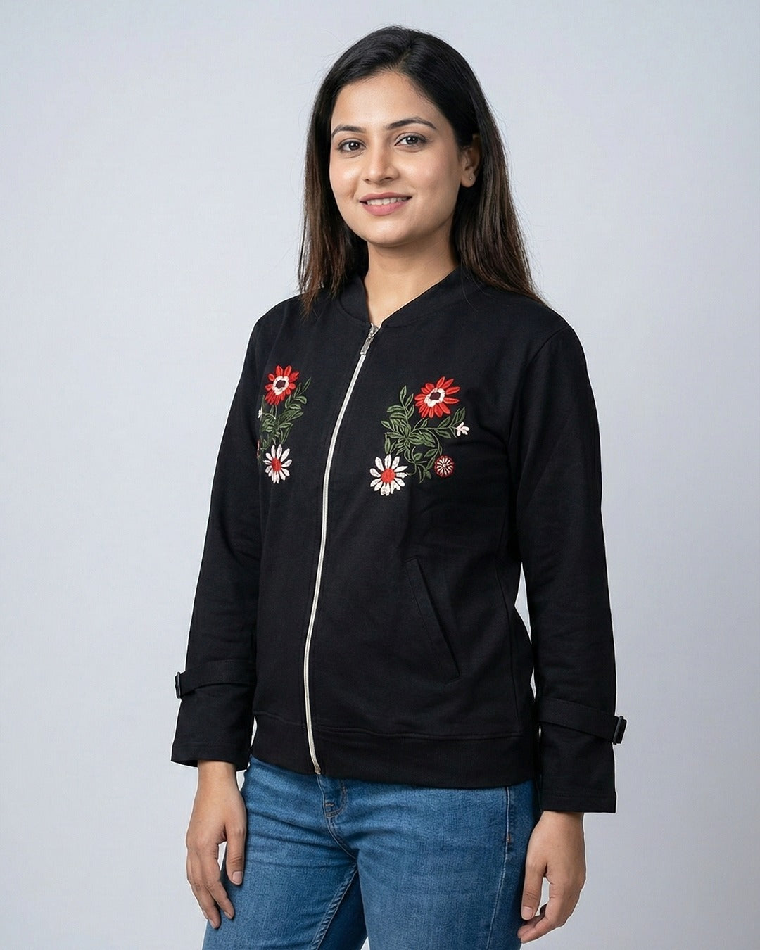 Embroidered Twin Floral Patch Jacket Stay cozy in style with our Embroidered Twin Floral Patch Jacket! Made...