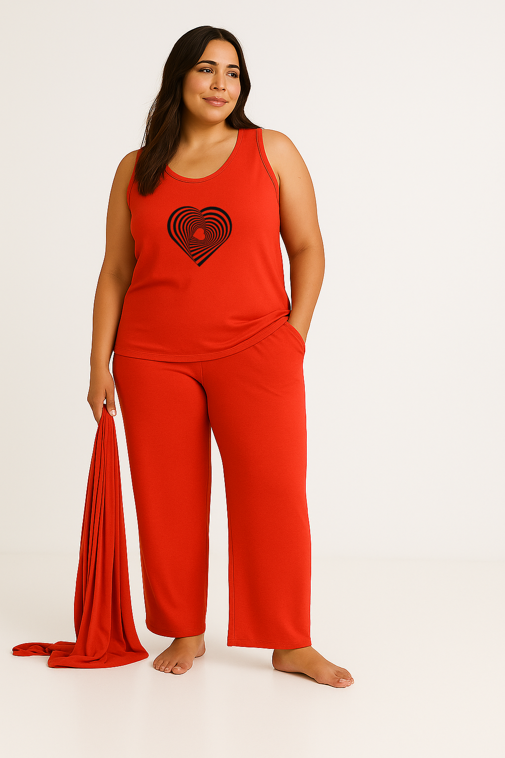 Women’s 3 Piece Nightwear Lounge Set with Geometrical Heart Print | Plus Size Loungewear