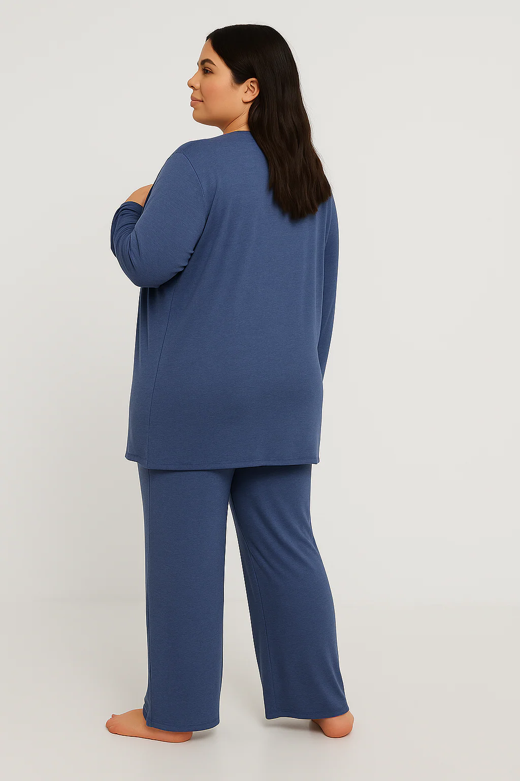 ✔ Long Cardigan – lightweight open-front layer that adds elegance and warmth.
