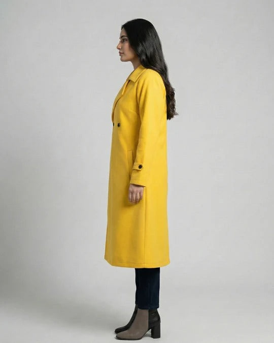 Its bold mustard yellow color adds a stylish pop to neutral winter looks, making it a standout piece for women who love confident, elegant fashion.